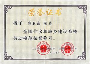 天津泰達環(huán)保一名員工榮獲全國住建系統表彰