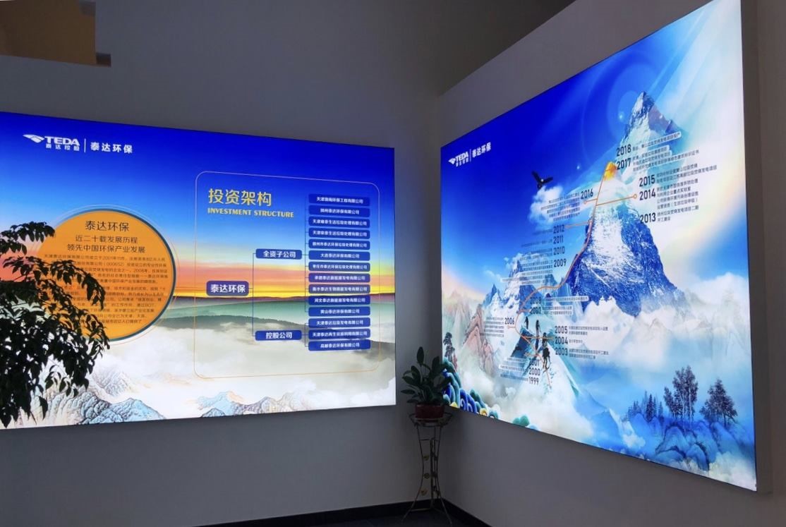 環(huán)保教育基地總共分為三個(gè)主題,分別是一層的生態(tài)文明展示館、二層的環(huán)保學(xué)堂和五層的環(huán)保樂園。其中,一層生態(tài)文明展示館主要分為三個(gè)板塊。第一板塊“魅力黃山”,從生態(tài)黃山和人文黃山兩個(gè)方面展示了黃山獨(dú)特的生態(tài)魅力;第二板塊“危機(jī)困境”,以視覺沖擊的效果突出了垃圾圍城的困境,以及黃山市生活垃圾的處理變革。黃山市的生活垃圾在2017年以前主要采取填埋的方式,直到2017年天津泰達(dá)環(huán)保有限公司開工建設(shè)了黃山市生活垃圾綜合處理廠,用當(dāng)前最科學(xué)、最環(huán)保、最安全的方式處理生活垃圾。所以第三板塊“綠色使命”,通過集團(tuán)簡介、業(yè)務(wù)領(lǐng)域、技術(shù)創(chuàng)新、科技創(chuàng)舉、項(xiàng)目展示、資質(zhì)榮譽(yù)、企業(yè)愿景等方面,向參觀者展示了泰達(dá)企業(yè)的環(huán)保理念和科學(xué)技術(shù),加深對(duì)天津泰達(dá)環(huán)保的了解,提升企業(yè)形象和影響力。