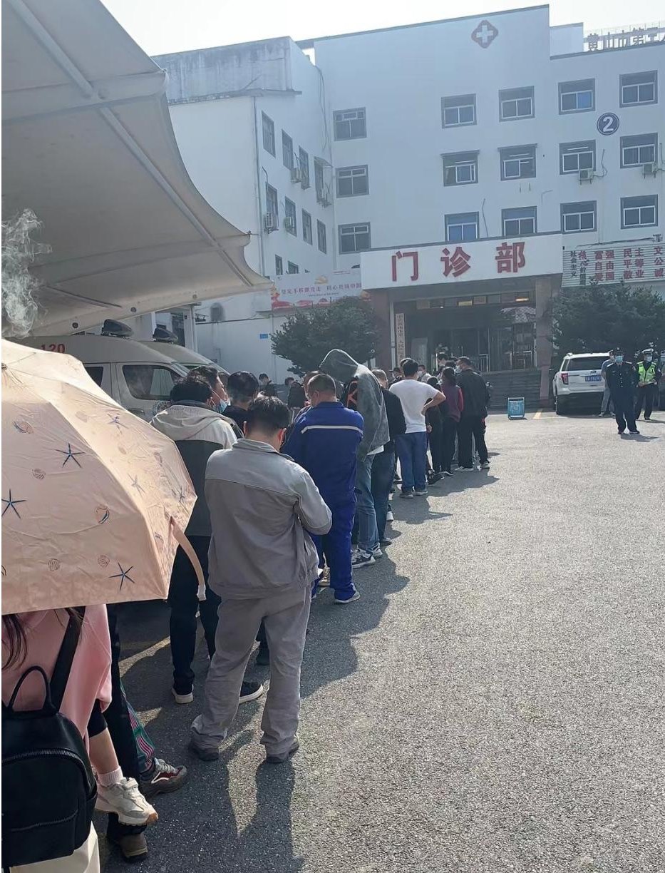 (現(xiàn)場(chǎng)工人連夜排隊(duì)核酸檢測(cè))